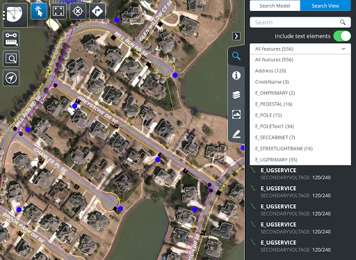 Bentley Map Mobile supports a simple interface using common gestures such as pinch to zoom, swipe to drag, and touch to select. The business properties of all mapping features are available for review. Users can quickly locate features using a free-text search function, and, once found, the selected feature is automatically zoomed to the view. The app is GPS-enabled, which simplifies the location of infrastructure in the field. If a network connection is available, an interface to Google Maps can provide driving directions to the selected feature. The view display can be simplified by toggling features off and on, and a list of features in the current view can be quickly generated for active review.