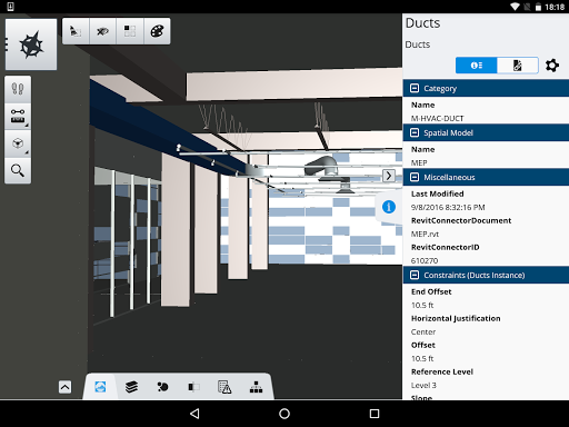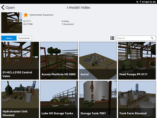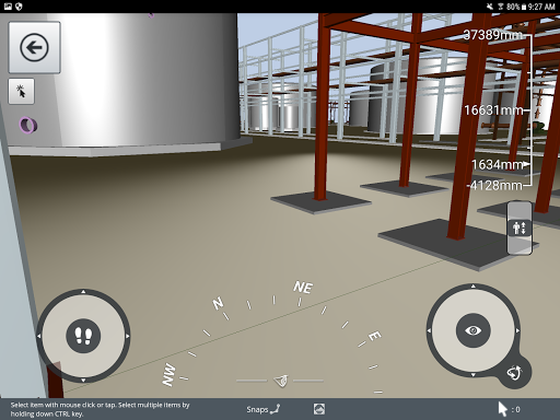 Navigate in 3D using ‘game-like’ touch gestures to walk, fly, and zoom, or analyze objects in the model by reviewing the properties of a selected object, query to find similar objects, or filter to display only objects that match specific properties. Interactive features enable users to create clear, precise views to easily access model objects and underlying information needed for the task at hand.