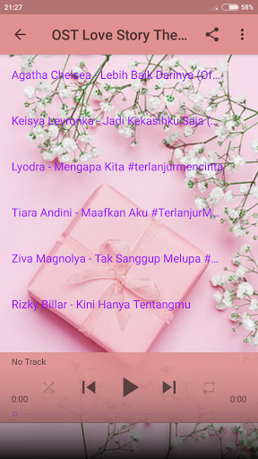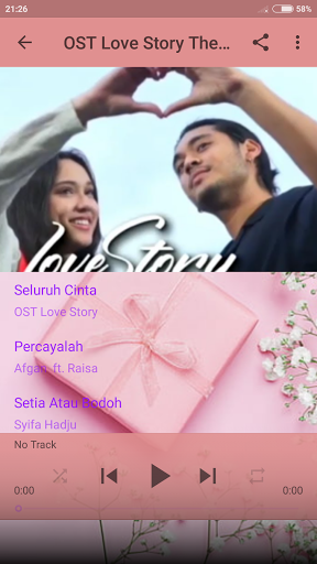 Love Love Story Ang serye Aplicsi para sa iyo guys soap opera love story sa buong mundo, dahil Ang application na ito ay naglalaman ng isang koleksyon ng OST pag-ibig kuwento kanta SCTV ay kumpleto at ang pinakabagong, ang OST kuwento ng pag-ibig offline maaari kang makinig madali nang hindi na kailangan ng isang internet network, sa ito nagbibigay kami ng kanta ost love story ay popular at pinakamahusay na gusto mo , Ngayon ay maaari kang kumanta tuwing may kuwento ng pag-ibig ng OST ang serye offline.