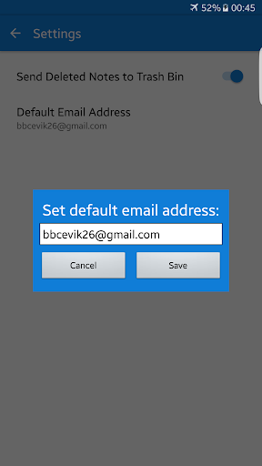 - Users can set a default email address to send their notes.