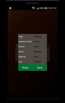 Selain itu untuk menyetel pengingat waktu sholat anda bisa menentukan jenis pengingat yang akan muncul ketika waktu sholat sudah tiba, ada beberapa pilihan pengingat suara yaitu standar, bersuara, azan dan anda bisa menentukan suara pengingat sendiri.