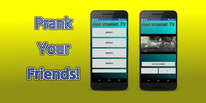 This prank app simulates Internet TV by using animated Gifs as a Live Stream impression. Just select a category of your choice and you can switch through a number of simulated channels. Have a lot of fun!