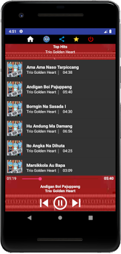 semua lagu didalam aplikasi lagu batak ini dapat didengarkan dimanapun dan kapanpun,karena aplikasi ini dapat diputar walaupun tidak ada jaringan internet,