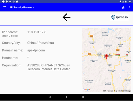 o IP organisation and geographical information with maps.
