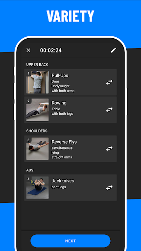 Only bodyweight or with equipment, but only the dumbbells, design your plan as you want it to be! You can decide and adapt your home workout to your needs, but that does not stop the individual adaptation. BestFit Home is the only app that allows you to further customize your workout. Swap, remove or add exercises to your workout plan. It's up to you how you want to personalize your workout.