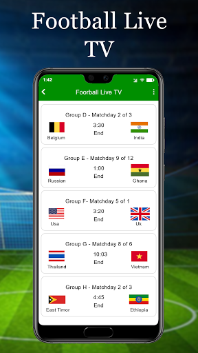 Watch live football on your mobile phone for free. Enjoy live streaming of Football-soccer matches without worrying about the hassle of monthly subscriptions and fees. Get yourself updated about football scores, news and much more from the football world. Watch all international League matches on this free Football TV channel in HD quality.