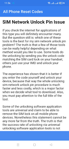 This apps get to all mobiles code. Every cellular telephone has reset codes to get entry to reset code. Easy method to unlock any sim card. This Apps will be help you to unlock your locked sim card easy tips & guide.