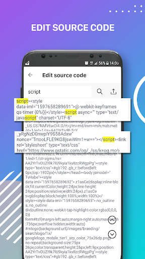 This application allows you to modify the HTML source code of a live website on your device only. Every change you make will NOT be saved to the system.