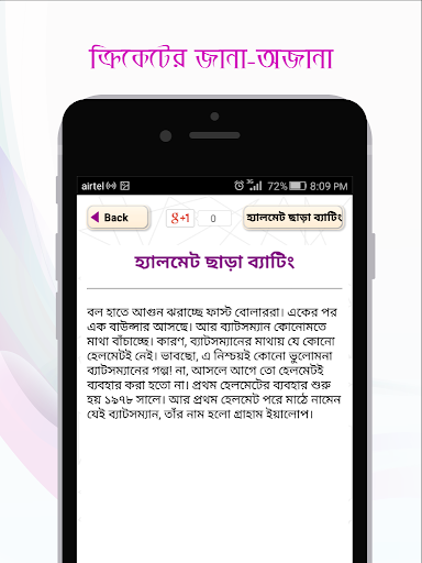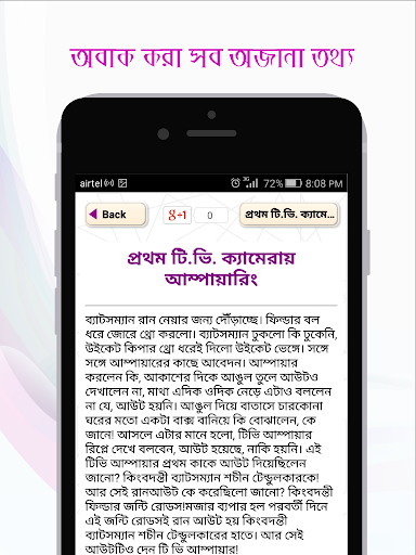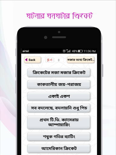 আজকের পৃথিবীতে খেলা বলতেই ফুটবল আর ক্রিকেট। আর বাংলাদেশে ক্রিকেট নিয়ে মাতামাতির শেষ নেই। প্রতিনিয়ত হচ্ছে বিশ্বকাপ, টি টুয়েন্টি, আই পি এল, বিগব্যশ এর মত সব টুর্নামেন্ট। ক্রিকেটের সংবাদ/খবর নিয়ে তৈরী ক্রিকইনফো সহ নানা সংবাদপত্র। কিন্তু মজার খেলা ক্রিকেট নিয়ে অনেক অজানা ঘটনা ও খবর আছে যা আমরা অনেকেই জানি না। উপরের ঘটনাটি এমনই এক ঘটনা। এ ধরনের আরো অসংখ্য ঘটনা নিয়ে আমাদের এ অ্যাপটি।