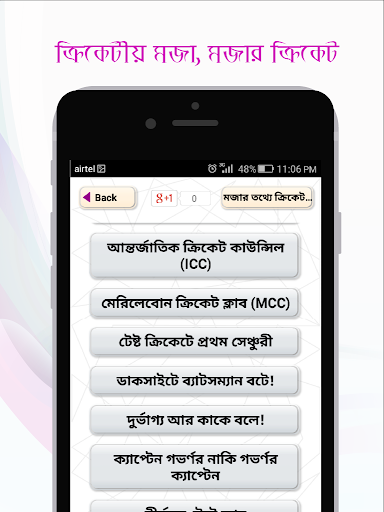 Football and Cricket bangla are two most popular game of this time. Bangladesh is a cricket fan nation. People here always enjoys every offered cricket tournament like World cup, T 20, IPL, Big Bash etc. by live streaming or on TV. Sometimes they keep update themselves by crickbuzz, crickinfo, espn etc. news channel apps. But there are many fun facts about cricket game which most of the people don’t know about. This app contains many of the funny incidents, records, puzzles and interesting information regarding the game of cricket. cricket games is the most popular sports and games in Bangladesh. cricket live tv is very much loved by Bangladesh cricket fans. People here spend sleepless night for IPL, BPL, t20 / T 20, cricket world cup etc. here are many fans of