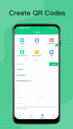 QR code scanner, barcode reader app also has a QR generator feature allowing you to generate your own QR codes with different types easily