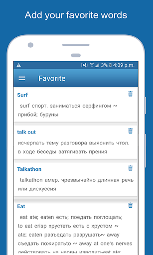 Our new English to Russian Dictionary app is a light weight and elegant tool. You can find over 2 lac English words with their Russian meanings for Free on your smartphone! You can easily search for any word you want and we will take care of giving the meaning of it and the best thing is that you can take quiz to test your knowledge in this Indo-Russian language.