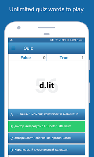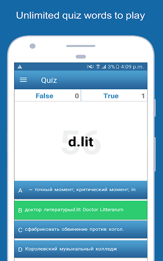 - We developed a new quiz inside Russian dictionary! To take the quiz, you can easily tap the option icon in the top left side of the screen and choose quiz. Now, you will see a word in the screen with 4 answers, you will have to tap the answer that you think its right to see if it’s the good choice or not. Keep in mind, that there is a countdown timer and if it finishes without a reply from you, then the quiz will ends.