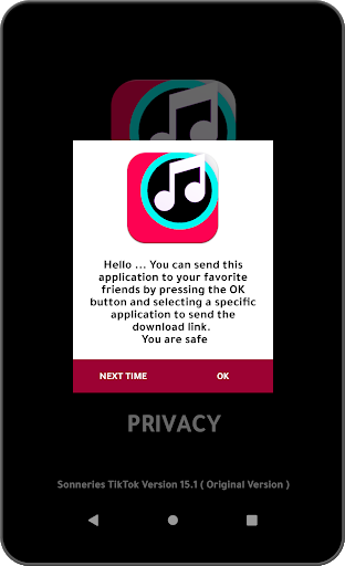 Bạn có thích các video ngắn của Tok Tok? Bạn có thích âm nhạc tuyệt vời của Tok Tok? Bạn có muốn sử dụng những âm nhạc tuyệt vời này làm nhạc chuông không? Ứng dụng này có thể đáp ứng nhu cầu của bạn. Với ứng dụng đã cài đặt này, bạn có thể có được nhạc chuông Tok Tok nổi tiếng thế giới.