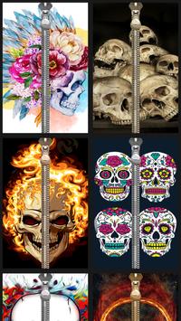 - the best lock app inspired by skulls. The collection of lock screen wallpapers inspired by skulls is ready. You just need to download skull zipper lock screen app and that's it. You now can easily scare your friends. Just let them unlock your phone and you will see how they will be terrified. All of these great things you can have for free with this lock screen app. Now it's very easy to decorate your phone screen with some scary zipper lock screen.