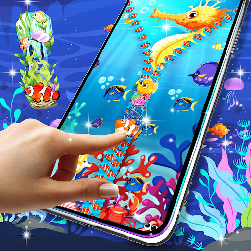 Fish zipper lock screen is a very beautiful lock screen that will transform the way you unlock your device with cute clown fish and other sea animals.