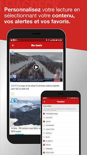 - les informations les plus pertinentes par rubriques (International, Société, Régions, Politique, Economie, Sport, High-tech, Science, Planète, Culture, Média, People, Féminin)