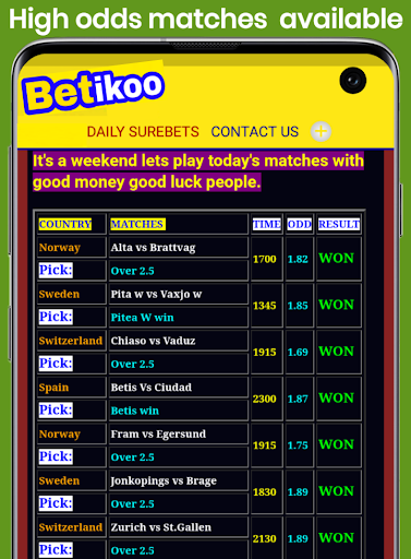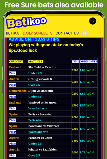 Helow friends Download the New Betiko app with jackpot predictions.The Ensured Predictions provided to you are carefully analyzed games to help you in gaining more from betting. All our games are sourced from top leagues.