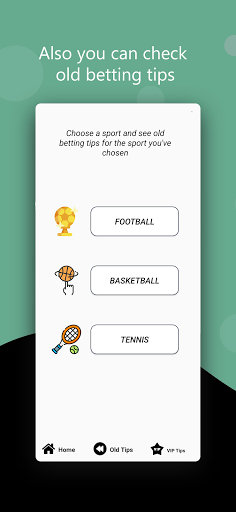Football tips, basketball and tennis, such as the most reliable tips will win. If you are happy with the application; Don't forget to give 5 stars and comment. Your comments are highly valuable for us. If you want to add something or have found an error that needs to be fixed, feel free to contact us.