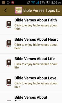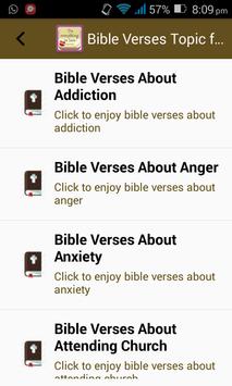 features hundreds of Bible verses separated by over 46 different topics. Bible verses by topics app is perfect for anyone wanting to read scripture on different life events that they're going through and how to apply them to their own life! This is #1 FREE Bible Verses By Topic App that lists the verses out by topic - It's Free, Get It Now. Bible Verses by topic app also features a beautiful experience with an easy swipe feature to allow you to read multiple verses at your leisure. Topics Covered In Bible Verses By Topic App: