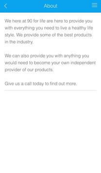 We here at 90 for life are here to provide you with everything you need to live a healthy life style. We provide some of the best products in the industry. We can also provide you with anything you would need to become your own independent provider of our products. Give us a call today to find out more.