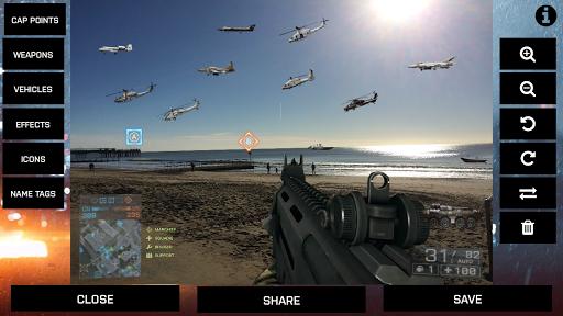 Next, take a photo with your phone or select an existing photo and add cool customisations such as explosions, capture points, tanks, choppers and more!