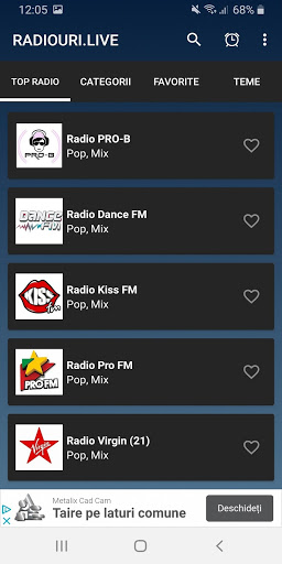Pe pagina noastra de radiouri.live, am adunat pentru tine cu mare grija o selecție de cateva sute de posturi, organizate pe categorii. Poti asculta orice post de radio gratuit online pe site-ul nostru, radiouri.live, dând pur și simplu click pe butonul play din dreptul postului de radio pe care doresti sa il asculti. Nu trebuie sa instalezi niciun program in plus pentru a asculta radioul. Poti deasemnea asculta si pe telefon, direct in browser, sau descarcand aplicatia pentru android