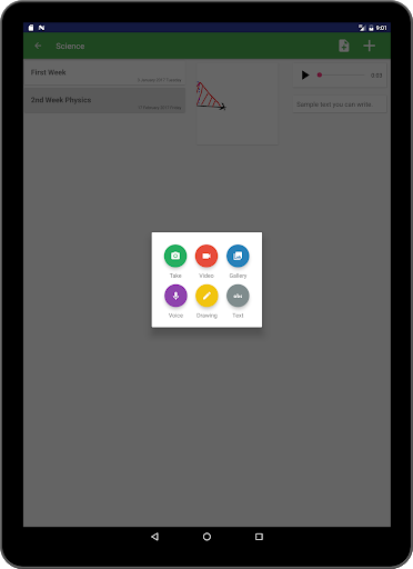 designed to record regularly on your phone, tablet, photo, sound, video, drawing. Take photos of your reverse notes, make notes with your own voice, add shapes and formulas in your own hands. With this