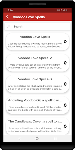 Voodoo witchcraft magic spells will help you accomplish anything you set out to do. In this app you will be able to request spells to obtain psychic powers, foresee the future, make couples split up, make people obey you, someone falls in love with you, get revenge, send bad luck, and a lot more.