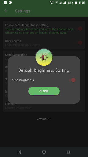 By default, this default brightness setting is OFF, this means, brightness setting will remain same after you exit the app.
