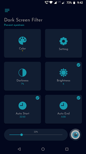 App reduces the blue light by applying color screen filters to your phone screen. With auto start and auto end options, you can configure app to activate screen filter during night automatically.