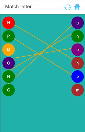 children can drag the abcd letter from left to matched right letter. if its wrong at the destination it will be reverted and if it's right then the line will be drawn and the letter's name audio will be played.
