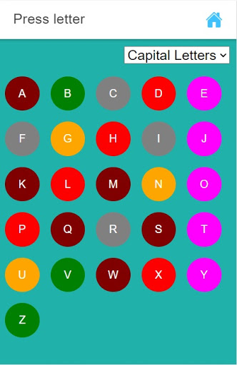 children can press abcd letter's circle from the list. when it clicked/touch/press colored abcd letter's circle it will display in new separate screen will animation's abcd letter name with image will display small to big with audio.