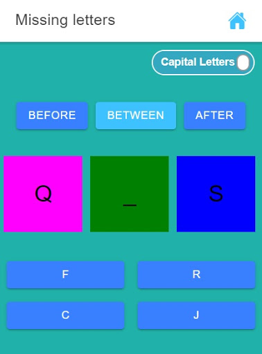 children can fill(select) missing letters before, between and after like as