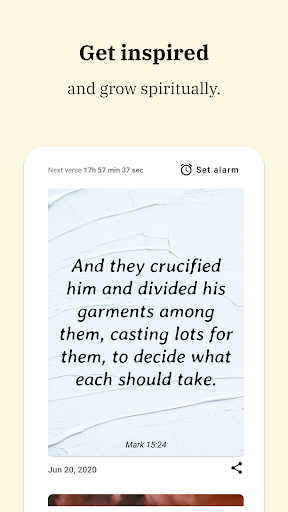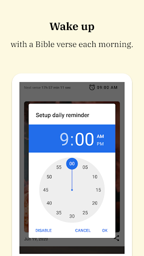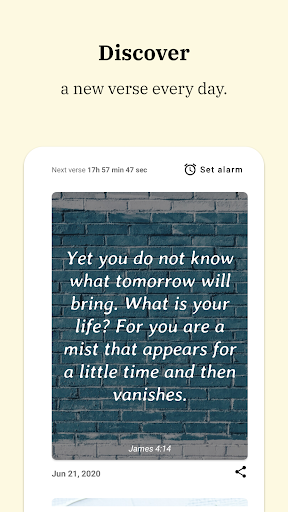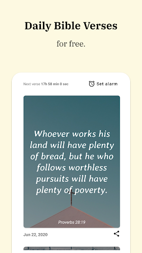 Start each day by receiving a notification with a new Bible verse or Bible quote.