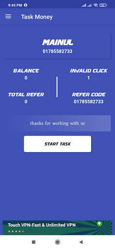 Download Task Money And Start Earning Today. just Simple Play And Earn . 1.First of all Connect VPN Select a Country USA, UK . 2.Open Task Money App 3.Play and Earn Money now .