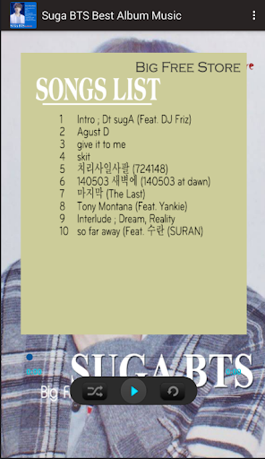 Suga BTS Best Album Music is an interesting application that helps you listen to Offline music without the need for Internet. In addition, Suga BTS Best Album Music is also an album collection with many of the best songs performed by the hottest singers. Our selected high quality MP3 songs are included in the Suga BTS Best Album Music application. This is the most complete and quality Offline music application music albums for the lyrical music fans we have compiled.