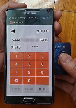 Just use your phone's NFC to read credit and debit cards and email invoices to your customers.
