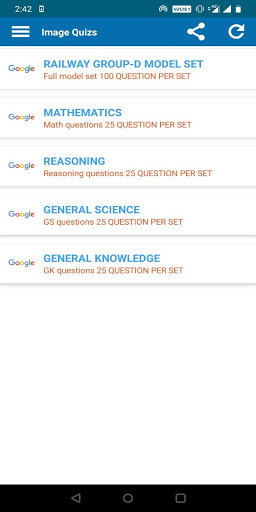 This app is quiz app for Railway GroupD exam in hindi,strictly based on Railway exam syllabus,and Railway group D previous year question paper.In this app you can practice question for railway group d exam.In this app you can also practice question category wise.This app is going to be very usefull for student who are apearing in railway group d exam 2020.If you face any problem regarding app please let us know in comment section we will try to solve that as soon as possible.