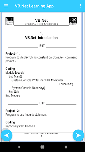 This VB.Net Training App will help you to learn VB.Net programming language by simple example. This VB.Net Training App is very useful for all type of learners. We designed this VB.Net Training App in a plain simple way in order that it is easily understandable by everyone. This VB.Net Training App is good for beginners to learn basic as well as advanced VB.Net programming by simple and suitable examples.