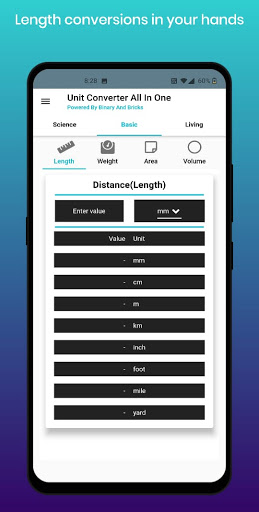 Unit Converter All In One is an android application for Unit Conversions. We use simple tools in the application to simplify the calculations in day-to-day Unit conversion. We help to calculate almost all kinds of unit conversions.