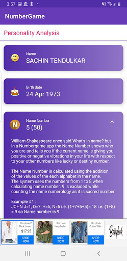 NumberGame is a Numerology Application to know your -