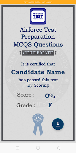 Airforce Test Preparation is very helpful application for those who want to serve the country and nation by joining the Airforce (Military, Navy, Air Force). Airforce Test Preparation is a guide to pass the Airforce initial test or to Pass ISSB test. Airforce Test Preparation , Physics, mathematics, English, verbal intelligence test, non-verbal intelligence test, General knowledge/current affairs, Logical and other academic tests. In Airforce Test Preparation you will find Mcqs questions related to Airforce test . This application will help you to become an officer in Airforce (Military, Navy , Air Force) before passing the ISSB test.