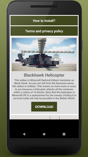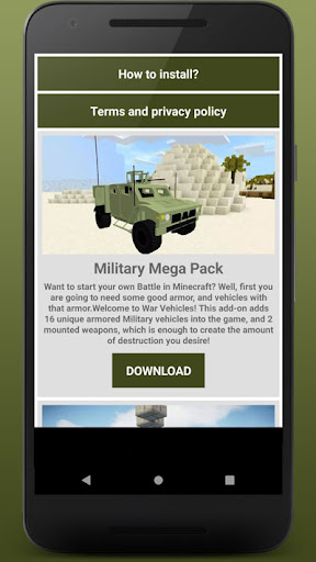 The app Military Mods For Minecraft was developed to supply mods to everyone interested in decorate and personalize the game.