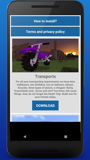 The app Transport Mod For Minecraft has a big catalogue of vehicles for decorate and personalize the game.