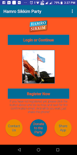 This is a "members only" app of the Hamro Sikkim Party based in the Himalayan state of Sikkim in eastern India. Only registered users can use this, so open the app and click on the register button to proceed.