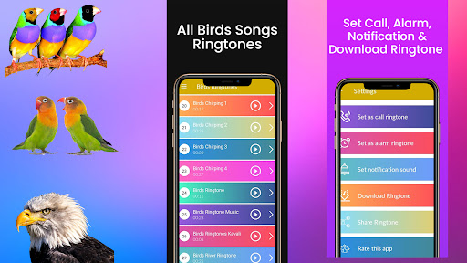 Enjoy cute birds ringtones 2023 collection to set bird alarm tune and bird calls ringtones. Download bird calls ringtones app that well designed beautiful ringtones app & easy to set lovely ringtones. By using this free birds song app you can surprise your family & friends cute birds tunes, lion growl, mooing cow, a cat pursuing sounds and much more free ringtones 2023. Install now birds sounds ringtones app & enjoy the new ringtones free. A best collection of all nature ringtones. You will enjoy the cat meow sounds, budgie sounds, kitten meowing eagle sounds, hawk sounds and parrot voice ringtones for cute birds lovers.