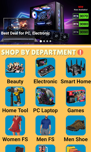 - There are 17 departments on the app: Beauty, Electronic, Smart Home, Home and Tool, PC and Laptop, Games, Women Fashion, Women Shoe, Men Fashion, Men Shoe, Kitchen, Luggage, Phone, Baby, Sport, Pet, and Toy.