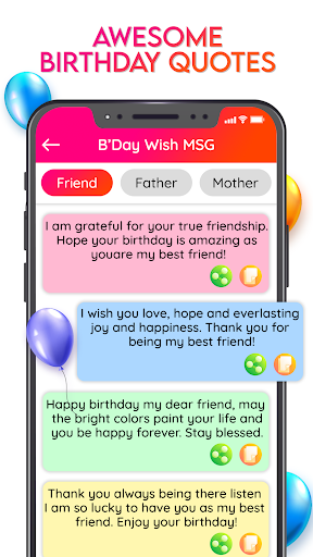 - Save and Share birthday wishes to a friend.