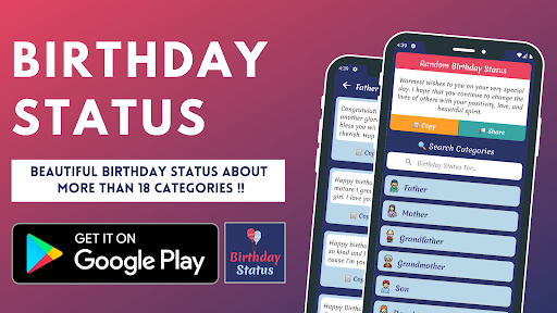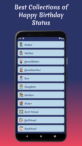 Celebrate your loved ones' special day in style with the enchanting "Birthday Status" app! 🎉🎂 Expressing your heartfelt emotions has never been easier as this application brings you an extensive collection of the most heartwarming and unique happy birthday statuses. Make your dear ones feel cherished and loved with the perfect birthday wish for every relationship! 💌
